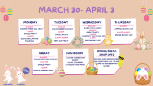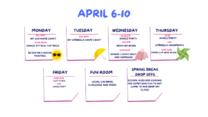Note: We are not a childcare facility, so an adult caregiver (18 or older) is required to stay with each child and is responsible for their general safety and supervision.
